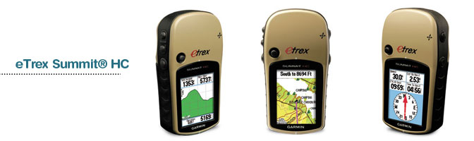 The GARMIN eTrex Summit HC is very easy to use thanks to its click stick and user friendly graphical interface. I am not familiar with the Summit HC but the typical handheld unit has a setup area where you specify which of the loaded maps you want the unit to display. Besides the GPS receiver the eTrex Summit HC has an electronic compass and a barometrical altimeter.